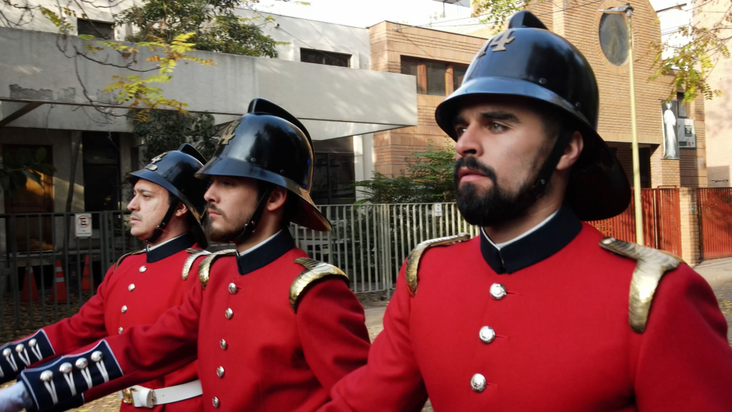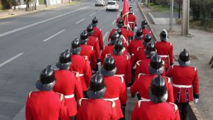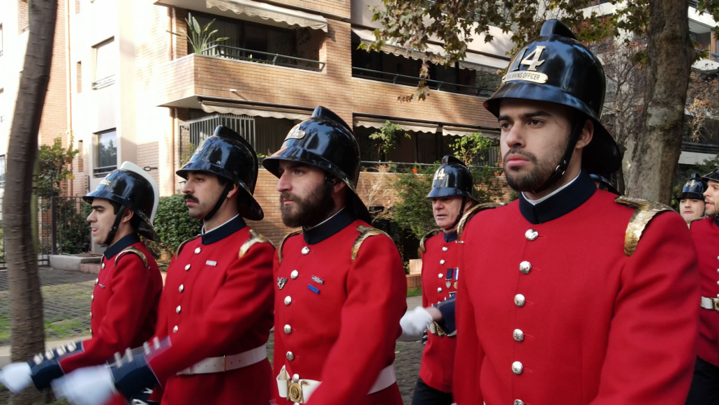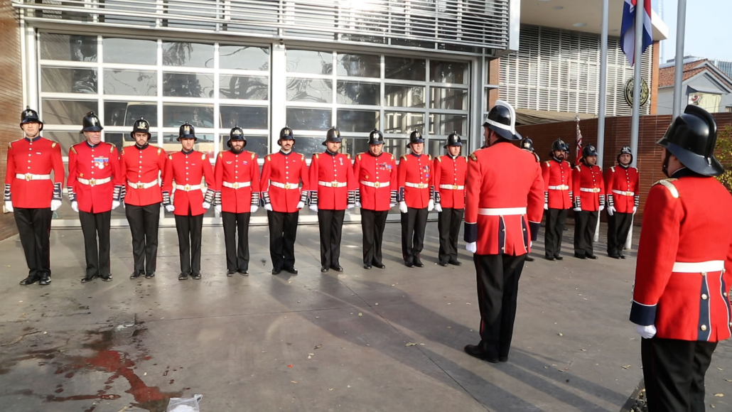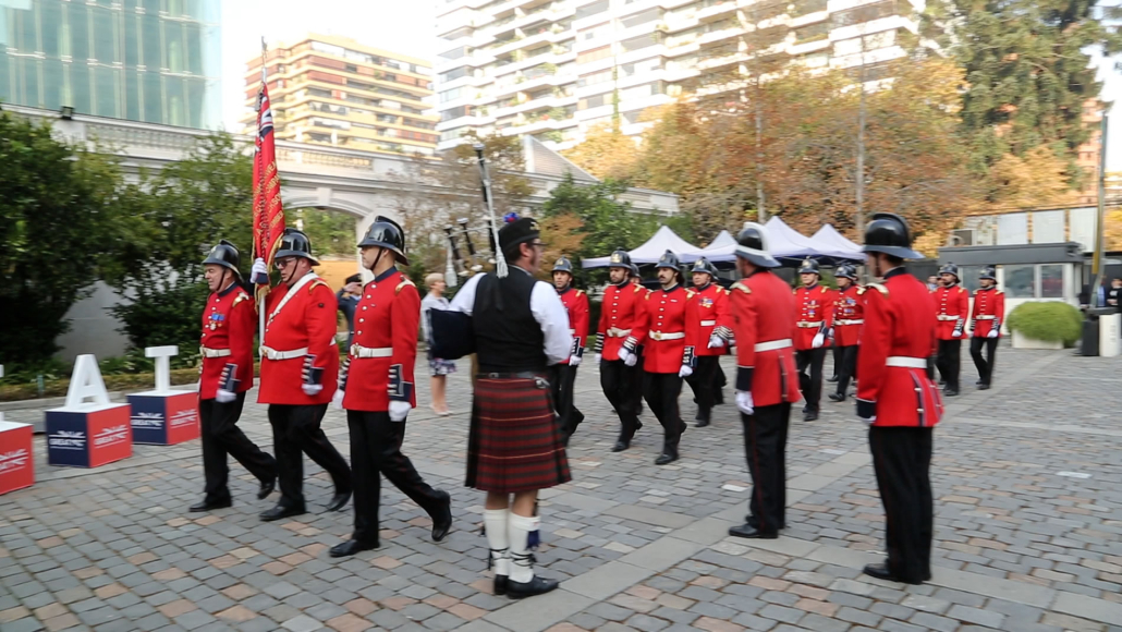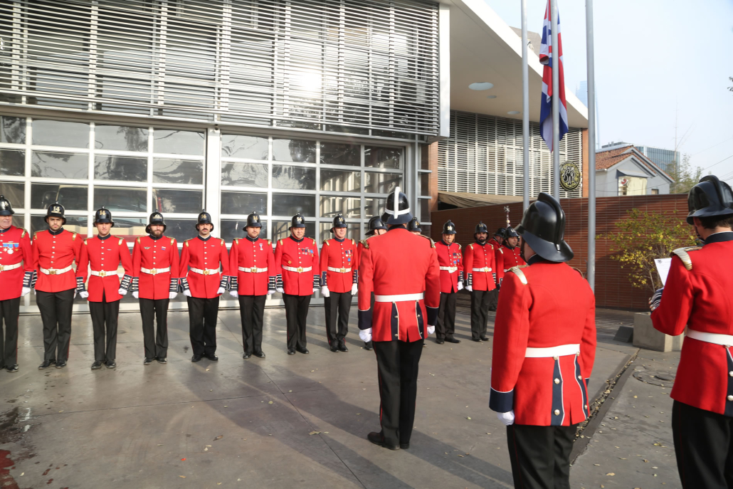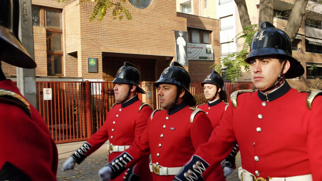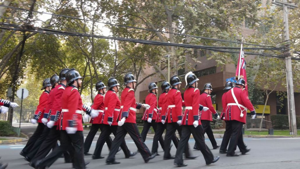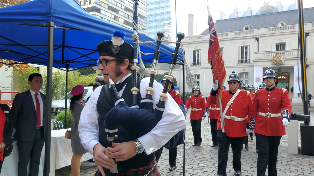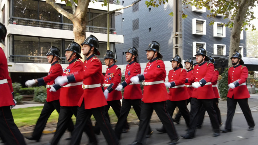 La Compañía marchó desde el cuartel hasta la embajada escoltada por un gaitero que llevaba el ritmo al más puro estilo inglés.