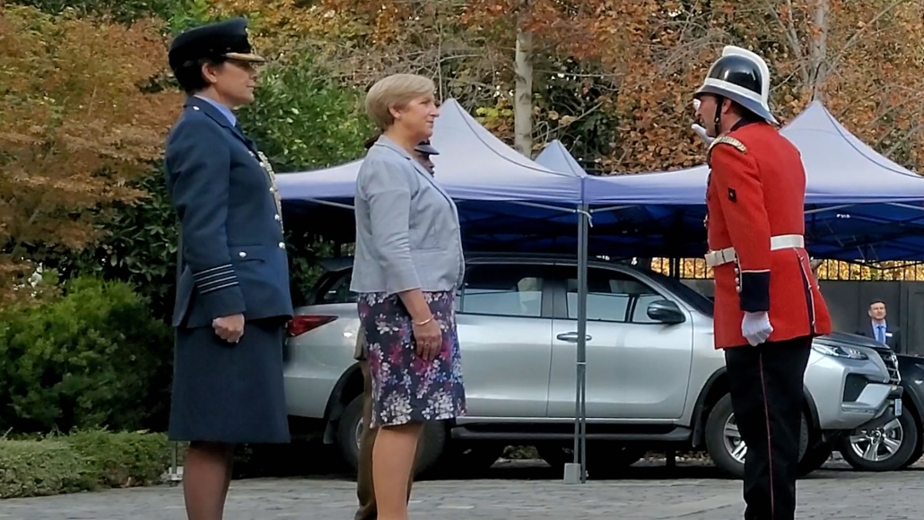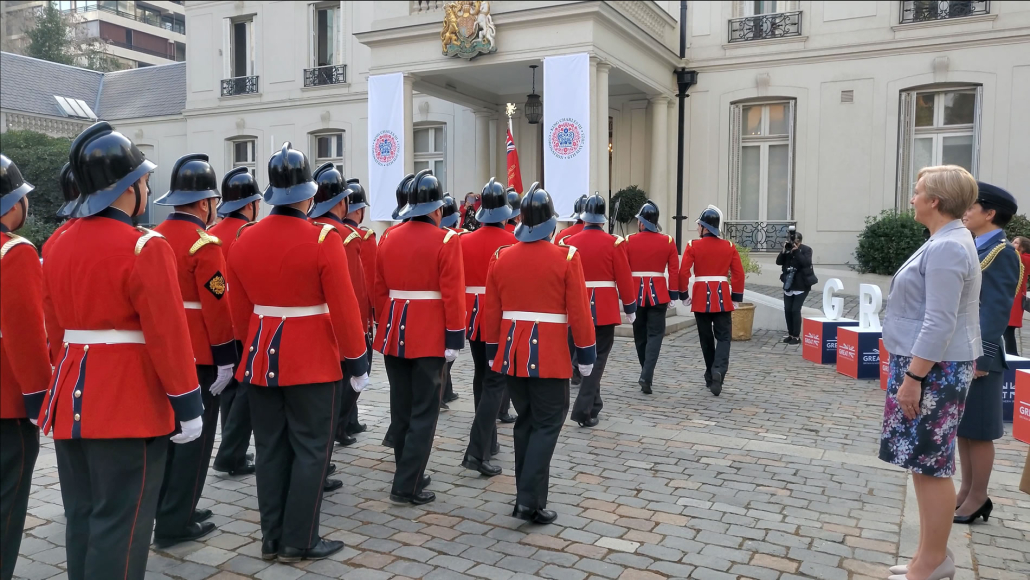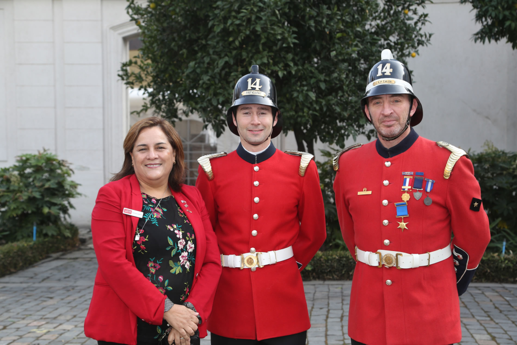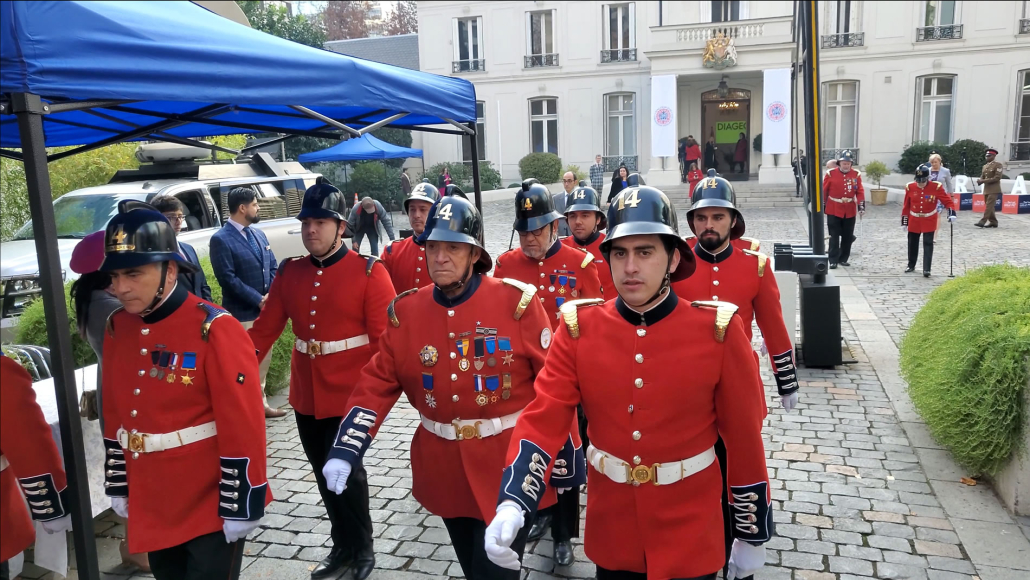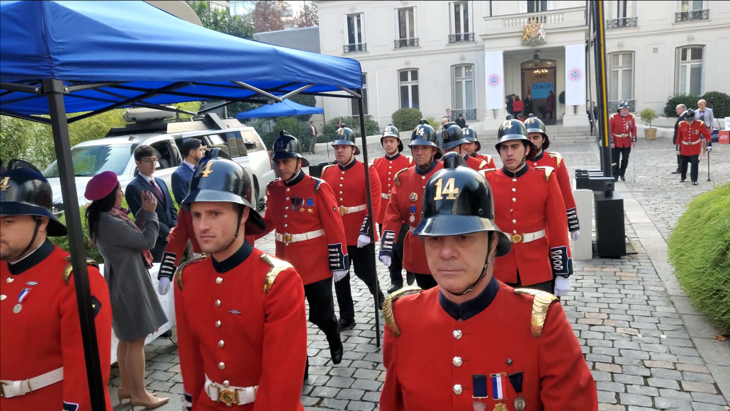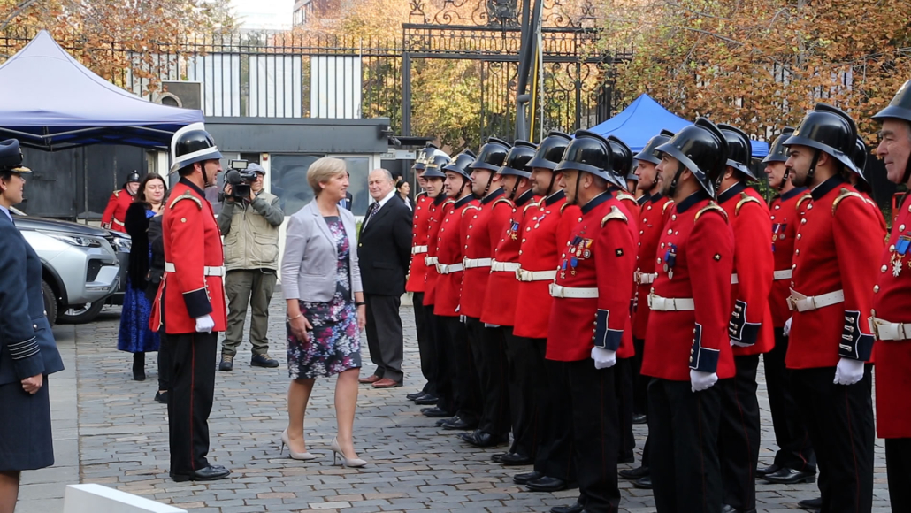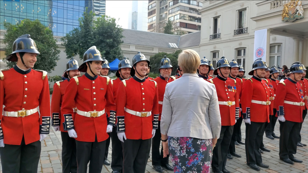 Una vez que la Compañía arribó a la embajada, fue saludada por la Embajadora Louise de Sousa, la que dio afectuosos agradecimientos al Capitán Rodrigo Vega y al resto de la Compañía.