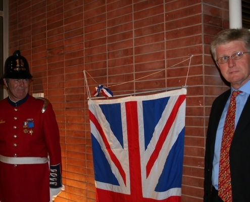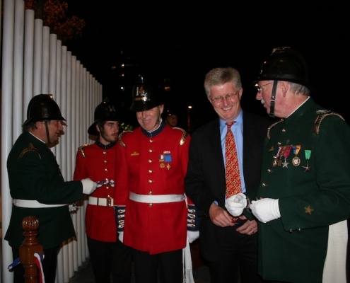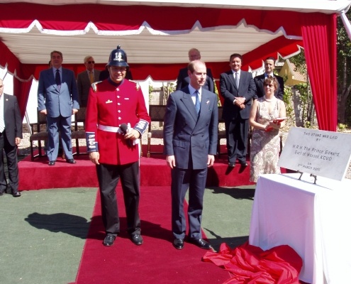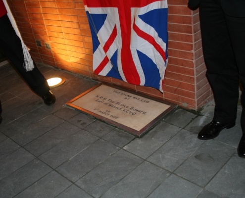 El 3 de marzo de 2005, ya con ambas construcciones demolidas, el Príncipe Eduardo de Inglaterra, ponía la Primera Piedra del nuevo cuartel. Fue sin duda ese momento un gatillador para que el hijo de la Reina aceptará en 2008 ser miembro honorario de nuestra Compañía.