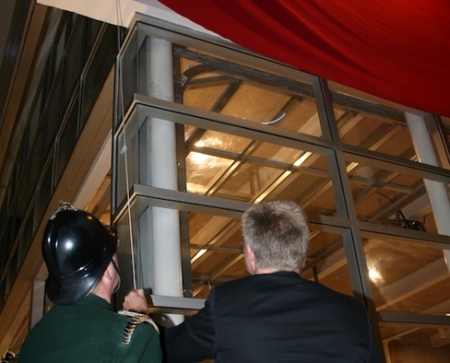 Nuestro sueño ya era una realidad y se tangilbiizaba el día 20 de noviembre de 2004 cuando el Cuerpo y nuestra Compañía formaban frente a ambas propiedades de Tobalaba, donde el Alcalde Cristián Labbé, vestido con cotona de trabajo y casco de la 14, maniobraba la grúa que derrumbaría el primer muro de la Juguetería Alemana.