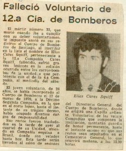 A la 01:30 hrs. muere el voluntario de la 12ª Compañía y nuevo mártir, Elías Cares, quien el día anterior había quedado herido de gravedad a consecuencia de la colisión que sufriera el porta escalas de su Compañía con la bomba de la 4ª Compañía.