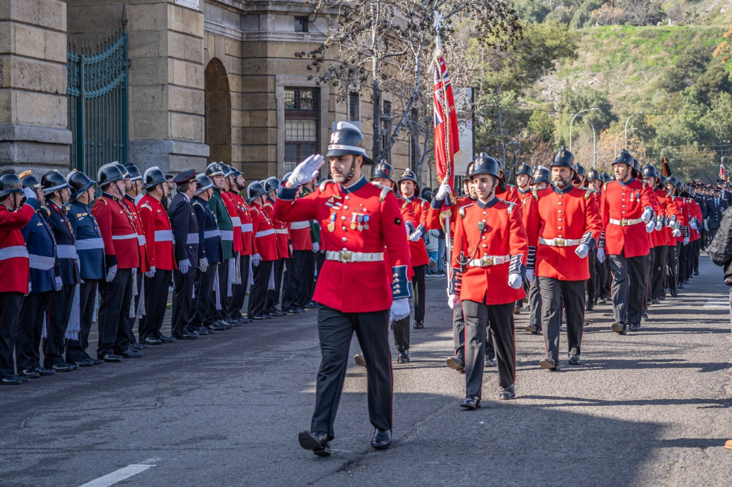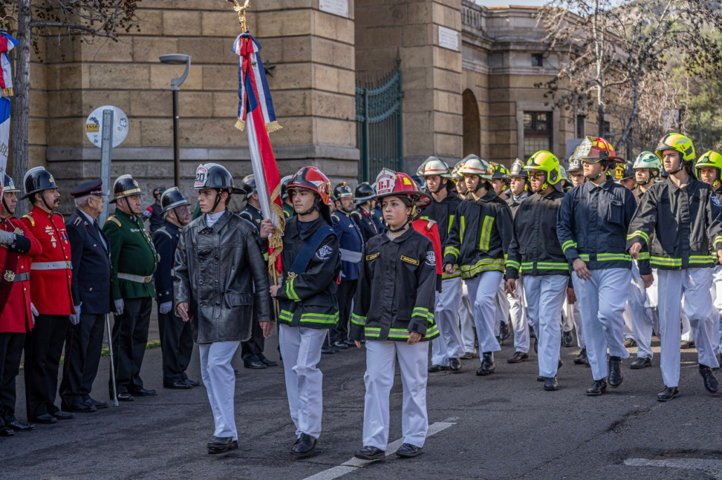 Contamos con una destacada formación de 44 voluntarios, cifra que sin duda resaltó entre las demás Compañías presentes. Asimismo, participaron nuestros Fire Cadets, quienes, junto a las otras Brigadas Juveniles del Cuerpo, formaron por primera vez en una ceremonia de esta naturaleza.